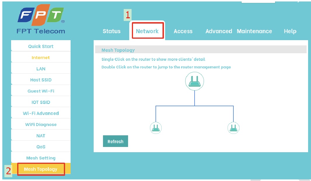 Truy cập vào mục Mesh Topology để kiểm tra: