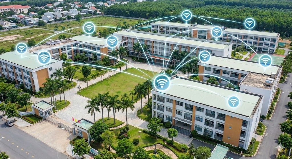 Trường học cần router doanh nghiệp và AP chuyên dụng, vì số lượng thiết bị đông và sử dụng liên tục.